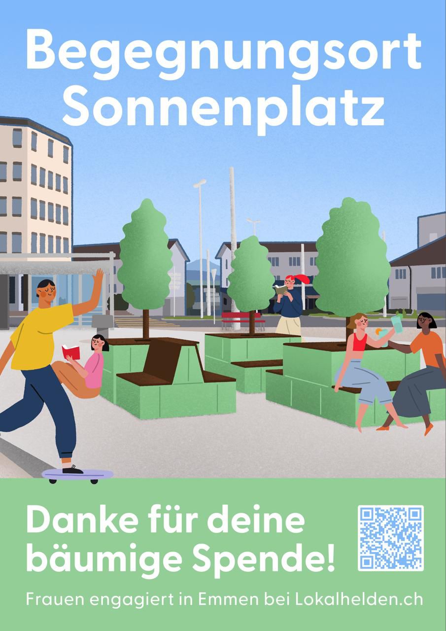 Der Verein FeE - Frauen engagiert in Emmen - sucht finanzielle Unterstützung für die Zwischengestaltung des Sonnenplatzes in Emmen. Der Platz wird täglich von hunderten Menschen überquert und genutzt; leider lädt er nicht zum Verweilen ein: Er ist im Sommer zu heiss und im Winter zu karg. Das möchte FeE zusammen mit Euch ändern.